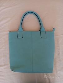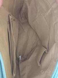 Borsa azzurra organizzata e spaziosa, azzurra con dettagli dorati
