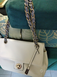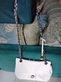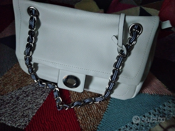 Borsa b.ca da spalla originale Combipel, con catena allungabile e cerniera centrale.