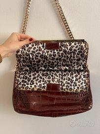 Borsa Baci & Abbracci colore marrone, con elegante effetto coccodrillo e tracolla a catena.