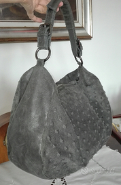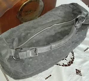 Vendo bellissima e capiente borsa Bagatt, in morbida pelle colore grigio, nuova, parte effetto lucido e parte effetto struzzo, misure larghezza 45 altezza 30, a spalla e a mano.
