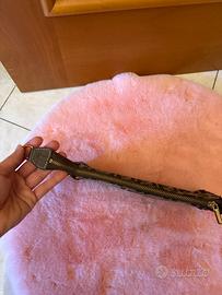 Vendo bellissima borsetta baguette portata a mano oppure si puo aggiungere una catenina ai lati,chiusura zip funzionante,internamente è stata ricucinta una piccola parte della tela interna ma esternamente perfetta.