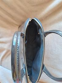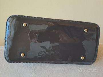 Borsa Baldini donna in vernice. La tonalità del colore é un marrone-grigio.