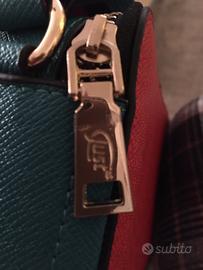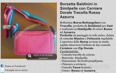 Borsa Baldinini in simil pelle rossa e azzurra con cerniere dorate e tracolla , nuova