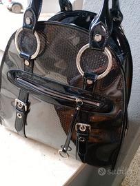 borsa a mano, Braccialini, in vernice nero/argento.