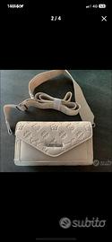 Borsa Donna Marca Sweet Years Tracolla regolabile Nuova mai usata Tasca piatta davanti 3 scomparti 2 cerniere lunghe tutta la lunghezza della borsa 1 scomparto interno con cerniera Capiente, pratica. Colore chiaro Piccola Borsa il colore originale in realtà e’ azzurro chiaro Con tasca davanti porta cellulare 2 cerniere Tracolla regolabile Marca Bata Condizioni pari al nuovo Titte e due a Euro 20,00