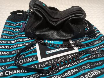 Borsa della Gabs in pelle di vitello nero, in condizioni eccellenti, è compresa la tracolla color nero (canna di fucile) e il sacchetto originale Gabs che si vede in foto. Massima serietà, la borsa è in ottime condizioni.