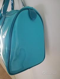 Borsa a bauletto celeste carpisa con manici e chiusura lampo, come nuova.