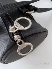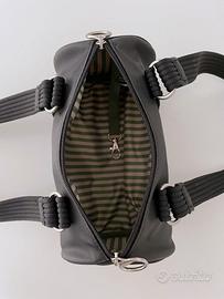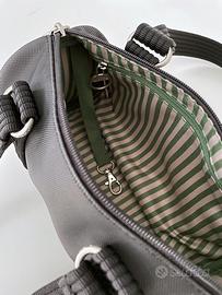 Tessuto impermeabile nero, interno a righe con tasca con zip e moschettone