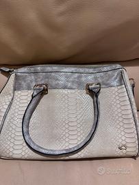 Borsa bauletto a mano color grigio e panna motivo coccodrillo, brand Carpisa. MAI UTILIZZATA, HA ANCORA IL CARTELLINO. Paradossalmente presenta difetti, ma da INUTILIZZO: vedi ultime foto (parte esterna grigia rovinata in concomitanza di dove si poggia la borsa). Nel complesso è comunque bella ed elegante. PREZZO STRACCIATO!!!!