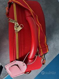 Borsa beauty-case da viaggio con rivestimento esterno in tela Rossa. Trasporabile sia con la maniglia che a tracolla.