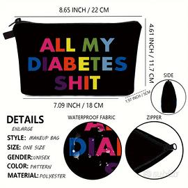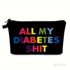 Borsa trucco con stampa lettera, nera, per viaggi, borsa cosmetica, borsa da toeletta, carina, con cerniera, con fodera spessa, per organizzare trucchi e accessori per il diabete
