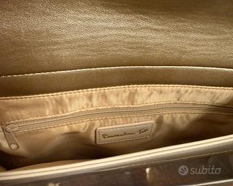 Nuova.dotata della sua tracolla. Color beige e oro. Con lavorazione frontale di cristalli e borchie oro. Due sconparti. Chiusura con bottone magnetico. Prezzo 249€