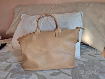 Colore beige, estiva, ampia e versatile, pratica per il giorno e per la sera. Comodi manici e tracolla per le esigenze