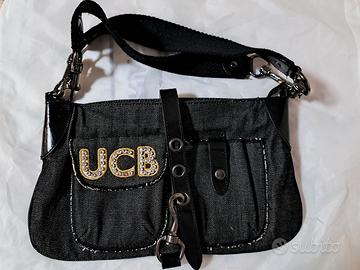 Questa borsa in denim nero firmata Benetton è quello che fa per te! Con il logo UCB ricamato in giallo con strass, è perfetta per chi ama un look casual ma curato.