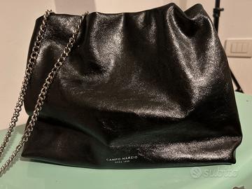 Borsa Campomarzio nuova mai usata color nero lucido e tracolla di metallo