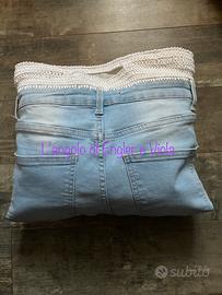Borsa Bergamo fatta a mano con jeans e cotone lavorato all’uncinetto