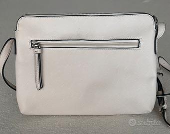 Questa borsa a tracolla bianco ottico è il manifesto della semplicità raffinata. Creata per la donna dinamica, la sua silhouette sottile e pulita la rende l'alleata ideale per ogni outfit, dal look da ufficio più formale al tempo libero del weekend.