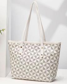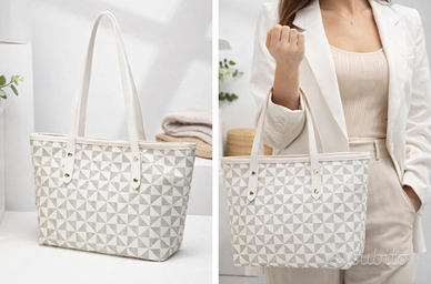 Borsa bianca elegante con fantasia geometrica moderna 🤍✨ Stile pulito e raffinato, perfetta per completare qualsiasi outfit, sia casual che elegante. ✔ Colore: Bianco con dettagli geometrici ✔ Design moderno effetto luxury ✔ Molto capiente, ideale per tutti i giorni ✔ Manici resistenti e comodi da spalla ✔ Condizioni: Nuova Perfetta per lavoro, uscite o anche come idea regalo 🎁 Look semplice ma di classe, sta bene davvero con tutto 🔥 📦 Spedizione veloce 💬 Disponibile subito