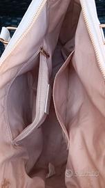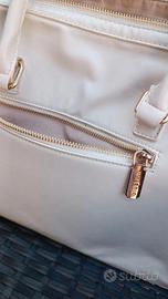Borsa bianca con inserti dorati e vari scompartimenti e tasche. In buone condizioni, come in foto. Marca "Valerio 1966".