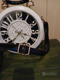 Vendo borsa in vera pelle Big Ben originale marca Emporium Italy, una pelletteria artigianale a San Marino. Orologio interno perfettamente funzionante. È leggermente rovinata nel bordo bianco come si vede in foto, per il resto in perfetto stato, anche i piedi in oro non hanno graffi o segni di usura come si può vedere. È compresa la sua sacca. Molto particolare, genere steampunk. Da portare a mano o a tracolla