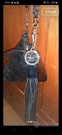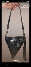 Deliziosa borsetta nuova ancora con la carta dentro. Mai indossata. Non ha il cartellino ma presenta ancora la sua custodia originale Gianni Chiarini. Morbidissima pelle colore blu scuro. Lunga nappina removibile con moschettone, lunga cm 25. Tracollina lunga cm 50, con moschettoni; si possono unire i due moschettoni e trasformarla in una pochette da polso. Lunghezza fondo cm 19. Altezza borsa cm 20. Chiusura con cerniera.