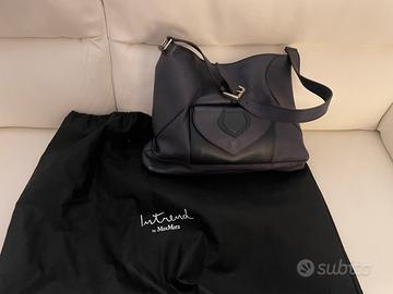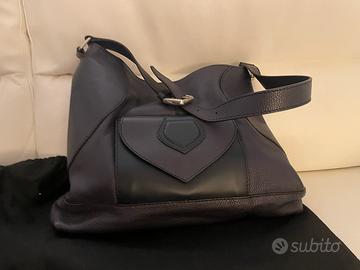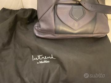 Borsa da donna in vera pelle colore blù scuro usata un paio di volte e comprata all'outlet Intrend di Max Mara. Misure: Larghezza 37 cm Altezza 29 cm Larghezza 12 cm