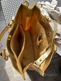 Borsa a mano blugirl colore giallo con manici colore oro. Placca dotata con logo. Dotata anche di tracolla. Utilizzata un paio di volte non di più. Ottime condizioni