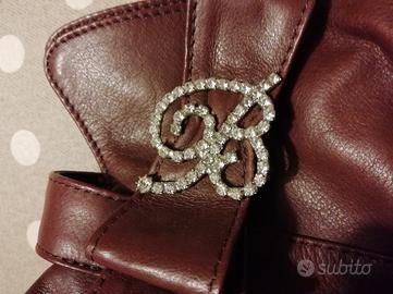 Borsa in pelle originale marca Blumarine colore marrone, due manici, dettaglio 'B' in Swarovski esterno, interno a 3 scomparti di cui uno chiuso da cerniera, tasca portaoggetti /documenti con zip.