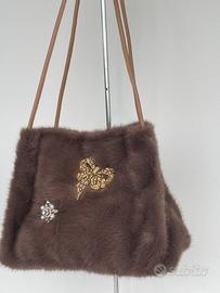 Borsa in ecopelliccia con decoro in strass.Dimensioni 22x18