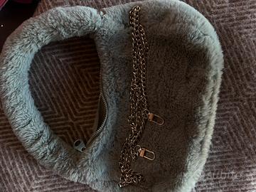 Borsa a manica in pelo, con catena di argento a tracolla in più