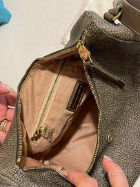 Borsa a tracolla con profili in pellre marca Borbonese. Pari al nuovo.