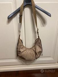 Borsa Borbonese Hobo Fold small color oro. Pratica e versatile, realizzata in tessuto riciclato OP. Borsa a tracolla con il logo Borbonese; chiusa da una lunga tiralampo. Tasca anche esterna. Usata due volte perchè troppo piccola per me che sono molto alta. Pari al nuovo; a disposizione per foto, misure e ulteriori informazioni.