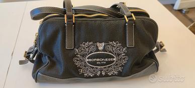 Borsa BORBONESE nera in tessuto OP, ricamo e marchio sul davanti, 3 scomparti con lampo, tasche interne. misure circa cm 35x21x 14