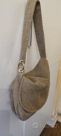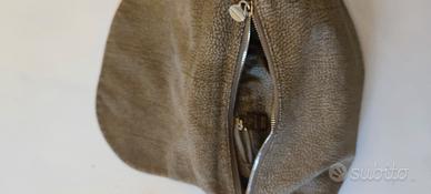 Borsa Borbonese in morbidissima pelle scamosciata tapiro OP naturale, chiusura a lampo sotto la parta di risvolto. Manico in camoscio OP con dettaglio a cerchio da un lato. Ottimo stato presenta solo qualche lieve ombreggiatura tipica dell'uso della pelle naturale. Cm 26x29x8 circa