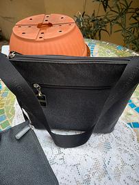 Borsa Borbonese tessuto nuova da portare a spalla o a mano colore nero con cerniera centrale e pochette attaccata all’interno con cerniera centrale vedi fito con dust bag .