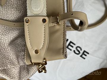 Vendo Borsa Borbonese in pelle e tessuto OP con tracolla…usata pochissimo come si può vedere dalle parti in metallo, la fodera interna , le parti in pelle e in tessuto esterno. Completa di dust bag e cartellino .
