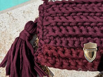 Borsa bordeaux all’uncinetto realizzata a mano