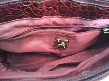 Borsa a spalla bordeaux effetto cocco, foderata, originale Carpisa (misure 27x18x9) con portachiavi con targhetta metallica brandizzata staccabile, (lunghezza 18 cm.), chiusura con zip e bottone magnetico.