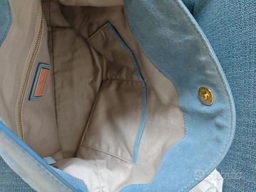 Causa inutilizzo, vendo bellissima borsa in suede a spalla Coccinelle, color azzurro. Nuova mai usata. Dimensioni: 35x37x15