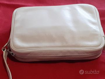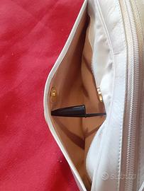 Vendo una borsa a tracolla in pelle bianca di Nazzareno Gabrielli, condizioni esterne molto buone, integra e morbida, minimi segni d'uso, l'interno è buono con una macchia come da ultima foto