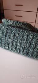 In lana verde melange fodera al fondo e chiusura con bottone magnetico