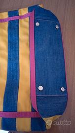 Borsa in tessuto originale Bosisio Parini Genova, modello e colore come in foto. Con borchie e fibbie dorate, targhetta dorata sul davanti. Misura cm 34 x 32, + cm 12 fondo e lati. In perfette condizioni, mai usata. E' predisposta per una tracolla che però manca.