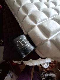 In neoprene con motivo a quadretti tinta su tinta, leggerissima.