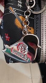 Bowling Bag Braccialini con fantasia musica. É stata usata pochissime volte, assolutamente zero difetti perché è sempre stata tenuta in modo maniacale. Ha uno charm a forma di canarino che è amovibile così come la tracolla che permette di essere rimossa per portare la borsa sia a spalla che a mano.