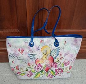 Vendo causa inutilizzo borsa Braccialini Looney Tunes, tessuto esterno sintetico e fodera intera poliestere, ottime condizioni, utilizzata pochissimo, astenersi perditempo.