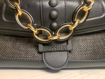 Elegante borsa Braccialini in pelle nera, perfetta per ogni occasione. Presenta una catena dorata decorativa che aggiunge un tocco di classe.