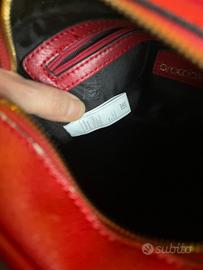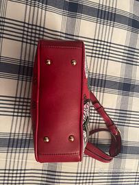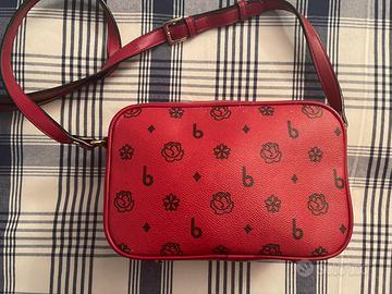 Borsa donna braccialini tracolla linea cartoline ""hong kong"". Realizzata in ecopelle di colore rosso con stampa. Tracolla in ecopelle in tinta, regolabile con fibbia. Chiusura a zip. Interno in tessuto, con tasca a zip e tasca a busta. Piedini metallici sul fondo. Lunghezza: 25,0 cm altezza: 16,0 cm. Profondità: 8,0 cm. Tracolla regolabile. Galvaniche dorate. Prodotto originale. Usato con alcuni segni di uso. Puntini bianchi sui bordi