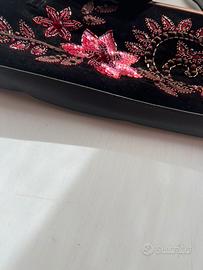 In velluto e rifiniture in pelle (interno manici e fondo, come da foto)
