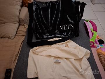 tote bag in tela verniciata con tasca zip e logo interno per autenticita'
