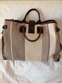 stupendo questo modello brandina grande beige con tutte le sfumature Dal marrone al Bianco. Ha due scomparti interni divisi da cerniera, una tasca laterale con cerniera, alcune taschine e il comodo Cerca chiavi, con moschettone, che si tira dall'esterno come il classico tira il lettino da spiaggia. colori caldi ottimi per l'autunno. Misura cm 40 di larghezza, cm 28 di altezza e cm 15 di profondità.